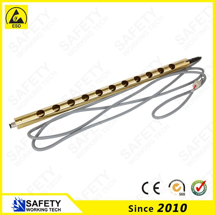 Die Hochspannungs-Ionen-Windstange kann eine große Anzahl positiver und negativer Ladungsluftmassen erzeugen, die die Ladung auf den Objekten, die durch den Ionenstrahlungsbereich gehen, neutralisieren können. Wenn die Oberfläche des Objekts negativ geladen ist, wird es die positive Ladung im Strahlungsbereich anziehen, wenn die Oberfläche des Objekts positiv geladen ist, wird es die negative Ladung im Strahlungsbereich anziehen, so dass die statische Elektrizität auf der Oberfläche des Objekts neutralisiert wird, um den Zweck der Beseitigung statischer Elektrizität zu erreichen.